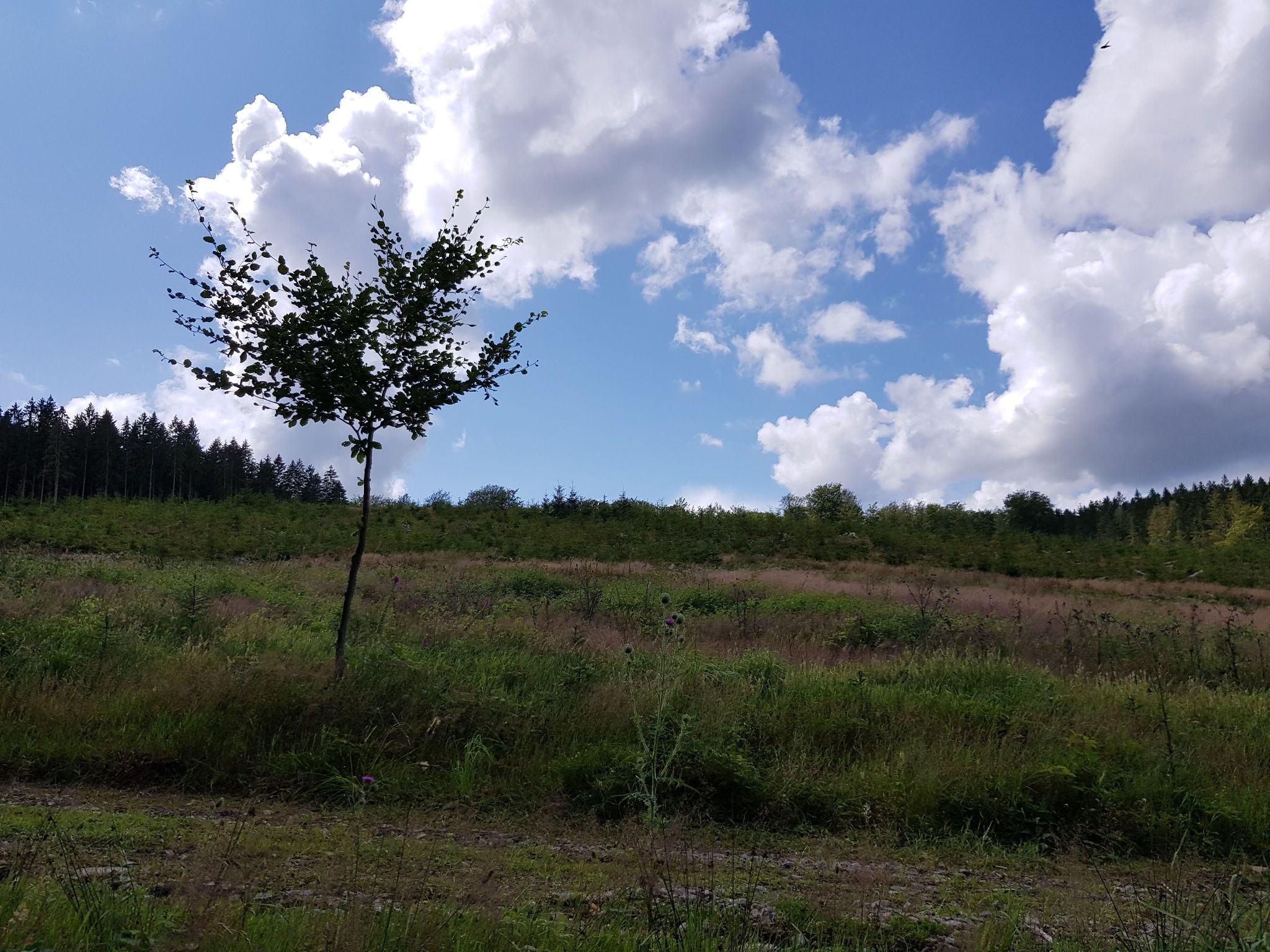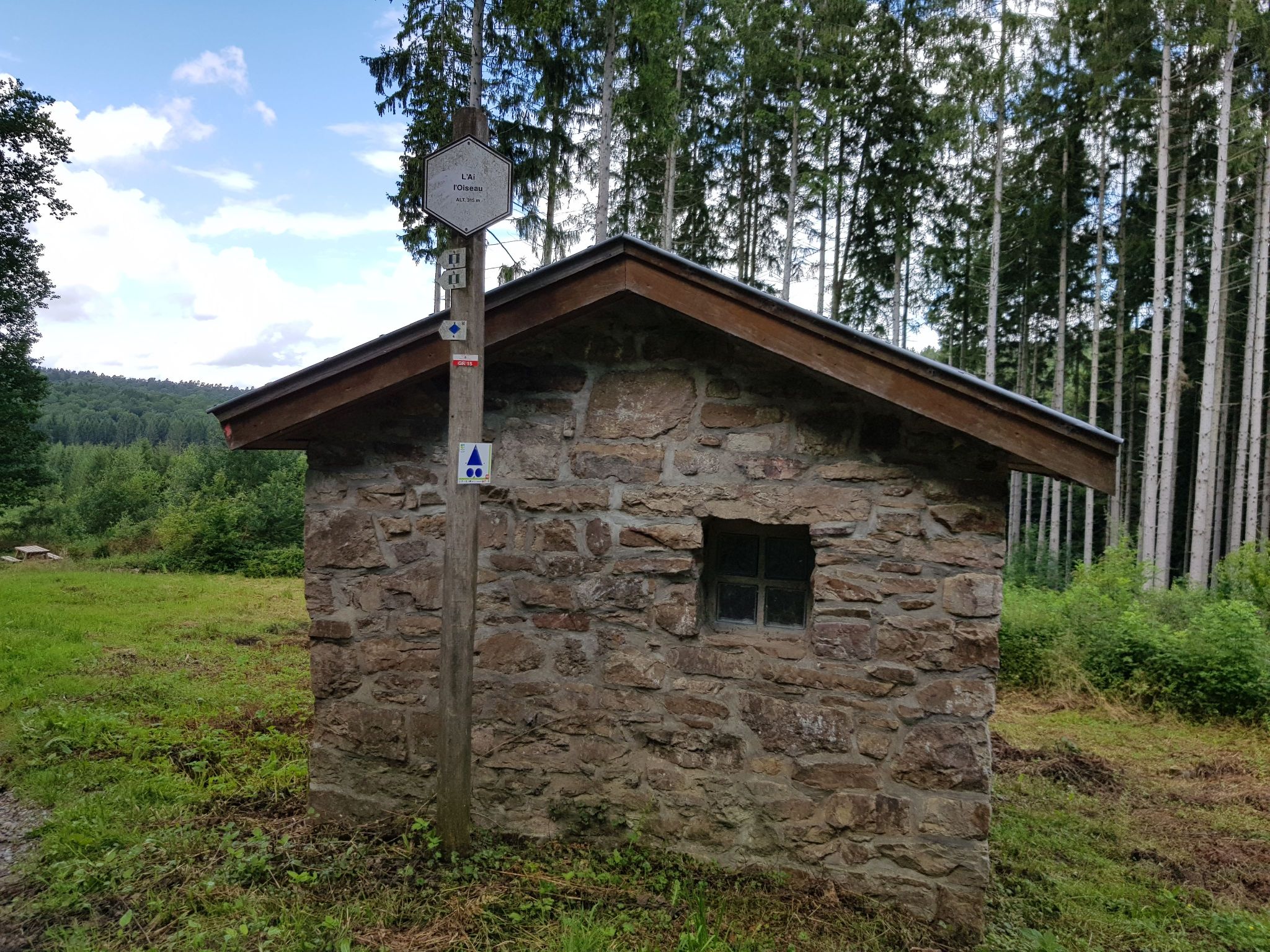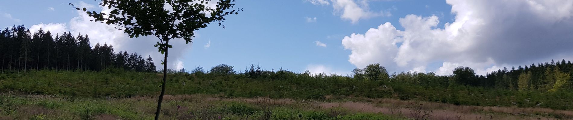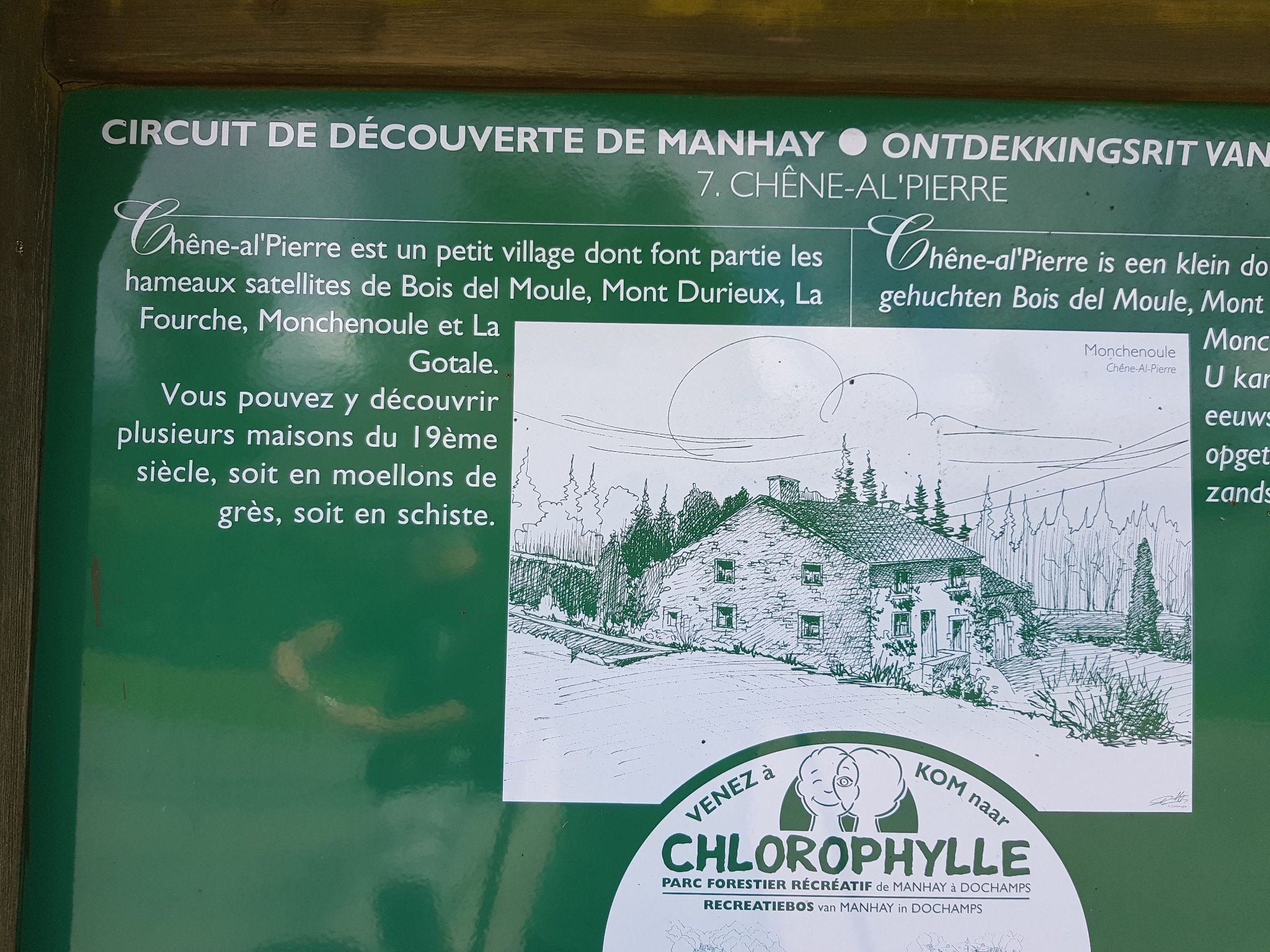 Promenade n°03/11 : “ Plantisse ” - 12,8 km – balise : rectangle blanc sur fond bleu Point de départ : carrefour de la Fourche à Chêne-al’Pierre Un peu d'asphalte au départ et au retour, mais très boisée, départ à 489m d'altitude, descente jusque Petite Hoursinne (295m) et retour au point de départ. CHENE- AL’PIERRE : voir promenade n°21. Se diriger vers la N30, la traverser et continuer tout droit vers Bois del Moûle. Route asphaltée en mauvais état qui redescend vers le bois entre les pâtures. Juste avant le panneau annonçant le hameau de Bois del Moûle, prendre vers la gauche un chemin empierré qui descend jusqu’au ruisseau du Pont Gérard. Traverser le ruisseau, remonter. Y à droite. Les bois sur la gauche sont très giboyeux. Ici, résineux et feuillus alternent. Le chemin principal fait une courbe en S et se prolonge par une longue ligne droite. Arrivés à hauteur d’une petite maison en pierre, vous vous trouvez à l’emplacement de l’ancien hameau de l’Ai l’Oiseau (ou Laidloiseau) qui fut complètement rasé en 1944 par les troupes allemandes en retraite. Un plaque commémorative, fixée sur un mur de la maison, rappelle ces faits tragiques. Avant 1914, le hameau comptait 3 maisons dont une très ancienne en torchis avec de belles boiseries sculptées à la main (pour l’étymologie du nom, voir Le Pays d’Ourthe et Aisne, p.99) Après un léger S et une longue ligne droite, prendre en angle aigu à gauche un chemin de terre qui remonte fortement (GR AE nord). Au sommet : à droite. Redescendre en tournant vers la gauche. Y à droite. Traverser le ruisseau d’Hoursinne (petit pont), Y à gauche et remonter le chemin empierré. Au sommet, belle vue vers Mormont et les bois environnants. Nombreux noisetiers et houx. Rejoindre la route asphaltée et le hameau de Petite Hoursinne (cfr promenade n°9) . Carrefour : tout droit, sur un chemin empierré bordé de mûriers, prunelliers, noisetiers, charmes et chênes. Tout droit entre les pâtures. Arrivés au bois d’épicéas, la montée s’accentue. Au sommet, belle vue panoramique sur les bois alentours. Le chemin devient sentier. Y à gauche : sentier étroit envahi de bruyères, genêts, fougères et myrtillers, parallèle à un large coupe-feu. Ensuite, haute pessière. T à droite (chemin détérioré par le débardage mécanique). Traverser une mise à blanc, suivie d’une haute pessière puis d’une magnifique hêtraie. A la sortie de celle-ci, 100 m avant le carrefour de Plantisse, prendre en épingle à cheveux à gauche (on quitte le GR). Le chemin sort du bois. Continuer tout droit et traverser Mon Derieux, un hameau de Chêne-al’Pierre. Au lieu-dit “ Coin du bois ”, belle vue vers la vallée de la Lienne. Juste avant la N 30, Y à gauche. Traverser la N 30 de biais vers la gauche et prendre une petite route sur la droite (dite “ chaussée romaine ”. Cependant, contrairement à ce que l’on a cru, il n’y a pas eu de chaussée romaine à cet endroit, mais simplement un chemin qui permettait de la rejoindre). Rejoindre le point de départ en suivant cette route tout droit. Cette balade fait partie de la carte de promenades Erezée-Manhay. Pour commander cette carte, cliquez sur le lien suivant: http://marando.be/catalog/index/view/id/165/lang/fr