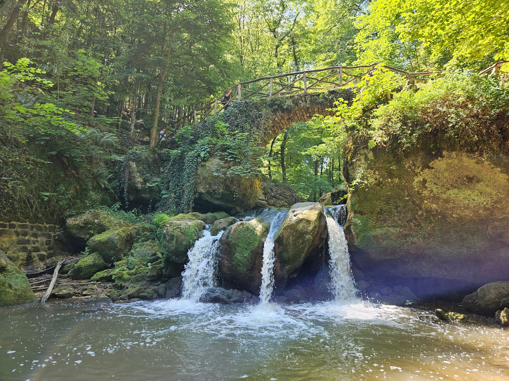 Le Schiessentümpel situé sur l'Ernz Noire est une cascade pittoresque que vous longez. La cascade est surplombée d'un pont idyllique en pierres et en bois. Avec les rochers environnants et la végétation luxuriante, le Schiessentümpel est devenu une des destinations d'excursion les plus populaires de la Région Mullerthal - Petite Suisse luxembourgeoise.
