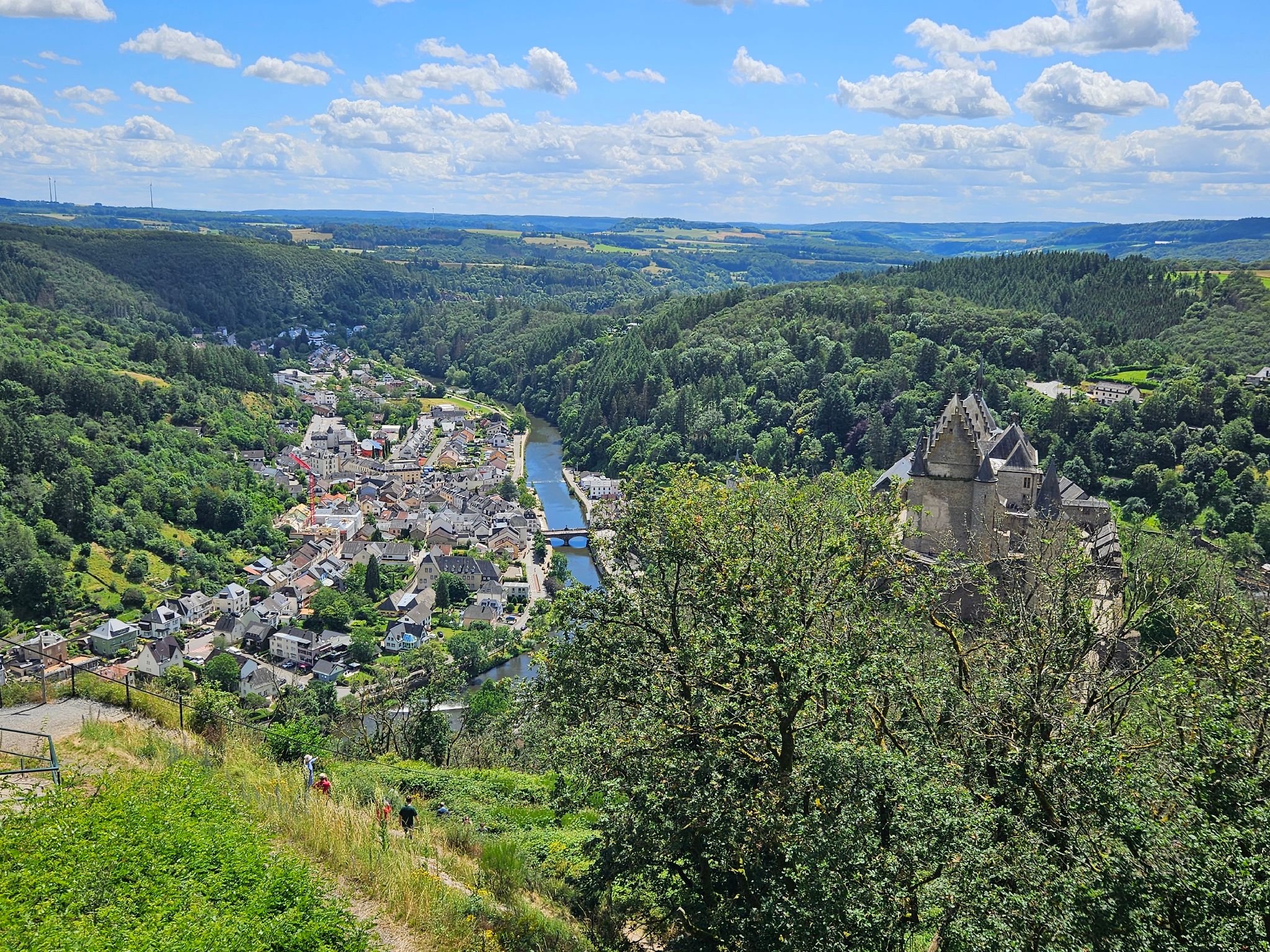 Lors de la montée et de la descente de ce circuit, vous pouvez laisser vos yeux et vos pensées vagabonder sur le magnifique paysage. Parfois, la vallée de l'Our est à vos pieds, puis vous découvrez le château de Falkenstein au loin, et dans la descente, Vianden se présente à vous avec son château et sa rivière sous son meilleur jour. Il est même possible de descendre en télésiège dans la vallée.